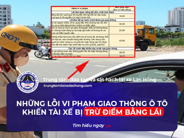 Tổng hợp những lỗi vi phạm giao thông ô tô thường gặp khiến tài xế bị trừ điểm bằng lái từ 2–10 điểm. Cập nhật mức phạt và quy định mới nhất 2025.
